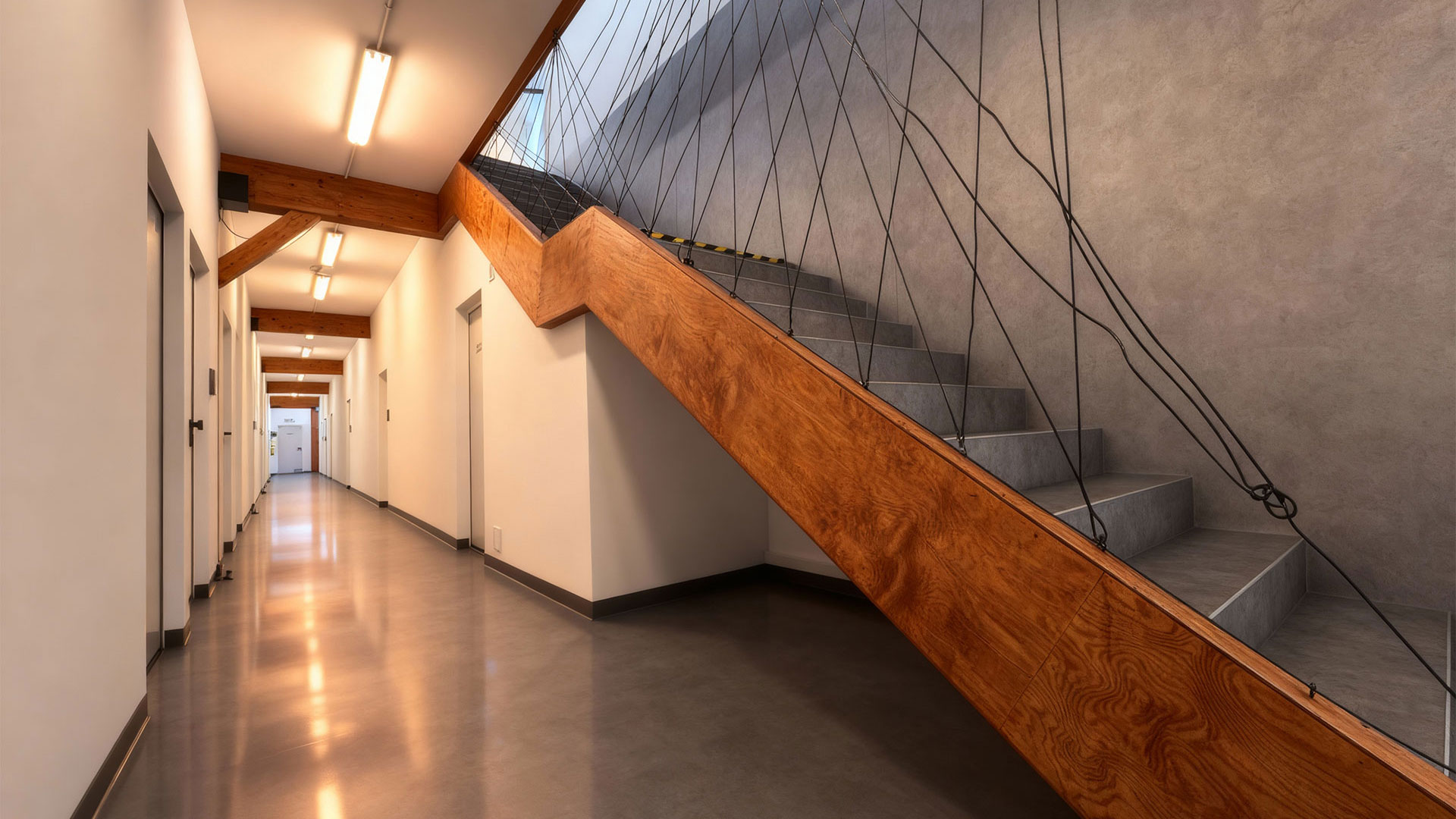 Funkcjonalne i estetyczne strefy użytkowe obejmujące ciągi komunikacyjne, zaplecze socjalne, kuchnię oraz toalety. Zaprojektowane z myślą o codziennym komforcie i płynnej organizacji pracy.